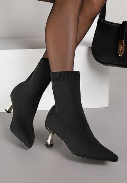 Czarne Botki Vices na Metalicznej Szpilce Kaczuszce ze Skarpetową Cholewką Vamige