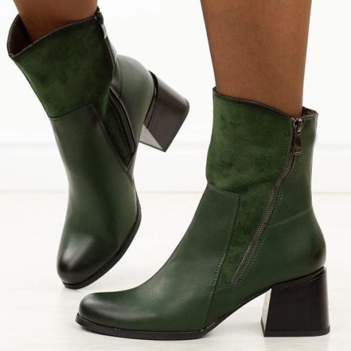 Zielone botki damskie na obcasie M.Daszyński Sa269-1