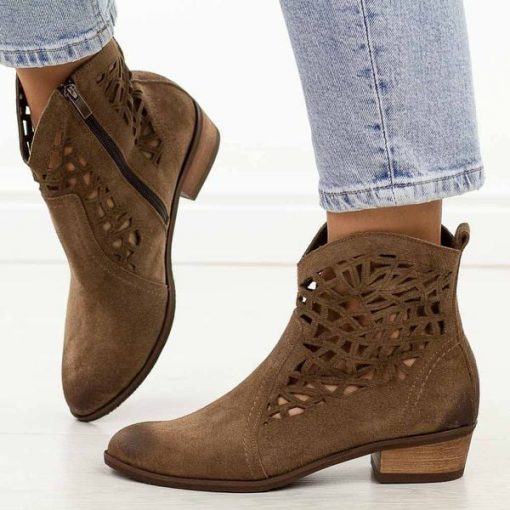 J.Brązowe skórzane Polskie botki damskie ażurowe na obcasie Deoni D398