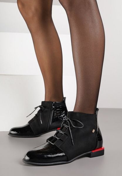 Czarne Lakierowane Botki Vices z Tłoczeniem Ozvila
