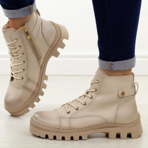 Beżowe botki damskieto niezawodne obuwie na chłodną jesień oraz zimę, które łączy w sobie wygodę, styl i trwałość. Wykonane z wysokiej jakości materiału skóropodobnego, prezentują się elegancko i nowocześnie. Zapinane na suwak oraz dodatkowo sznurowane, zapewniają idealne dopasowanie do stopy i komfort noszenia. Okrągły nosek sprawia, że buty są praktyczne i wygodne podczas codziennego użytkowania. Wnętrze […]