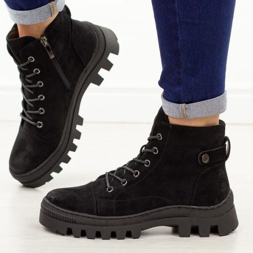 Czarne botki damskieto doskonały wybór na chłodną jesień oraz zimę, łączący wygodę, funkcjonalność i modny wygląd. Wykonane z wysokiej jakości materiału zamszopodobnego, prezentują się elegancko i pasują do wielu codziennych oraz bardziej eleganckich stylizacji. Zapinane na suwak oraz dodatkowo sznurowane, gwarantują idealne dopasowanie do stopy i komfort noszenia. Okrągły nosek sprawia, że buty są wygodne […]