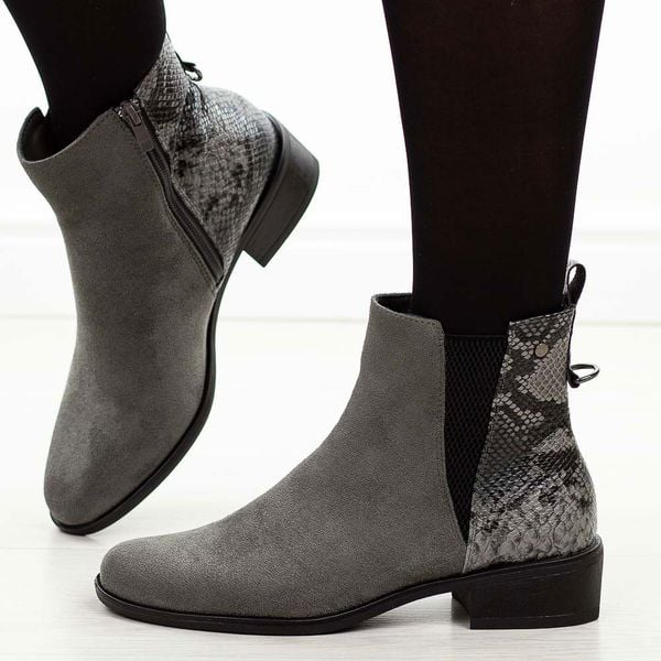 Szare zamszowe płaskie botki damskie M.Daszyński Sa198-30