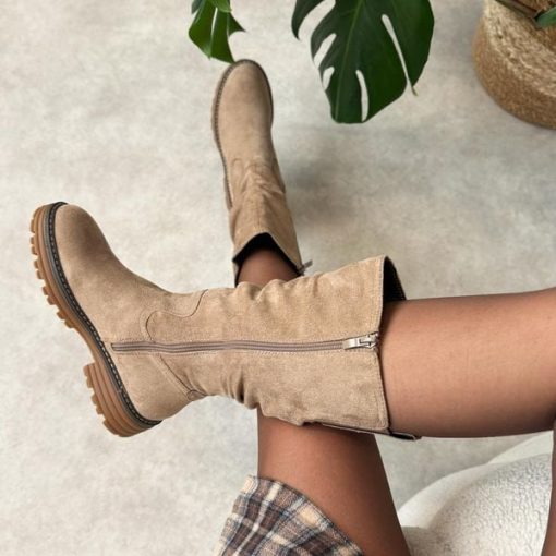 Beżowe wysokie botki damskie na traperzeto idealne obuwie na chłodną jesień i zimę, które łączy stylowy wygląd z wygodą i funkcjonalnością. Cholewka wykonana z materiału zamszopodobnego nadaje im elegancki i nowoczesny charakter, jednocześnie zapewniając trwałość i odporność na codzienne warunki atmosferyczne. Zapięcie na suwak umożliwia szybkie zakładanie i zdejmowanie, a okrągły nosek nadaje butom klasyczny […]