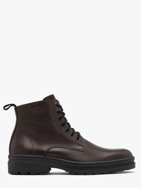 Ciemnobrązowe trzewiki męskie z logotypem na cholewce