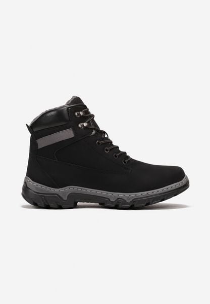 Czarne Sznurowane Botki na Płaskiej Podeszwie z Protektorem i Okrągłymi Noskami Venredia