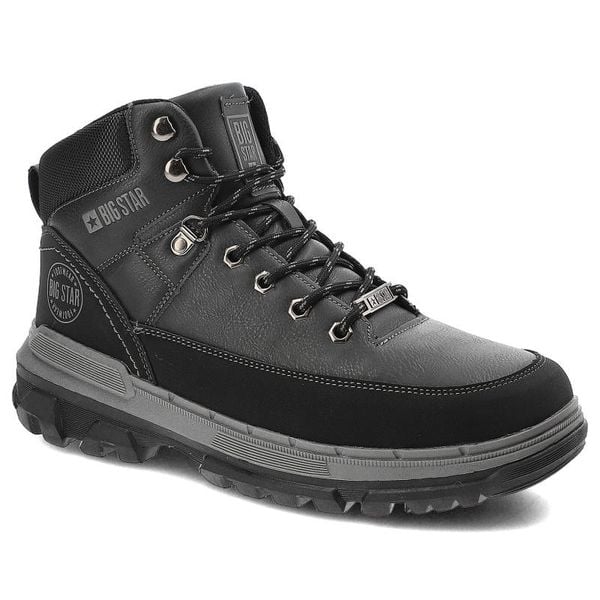Trekkingi męskie Big Star, z trwałej skóry ekologicznej i materiału tekstylnego sznurowane z grubą podeszwą, czarne, KK174120