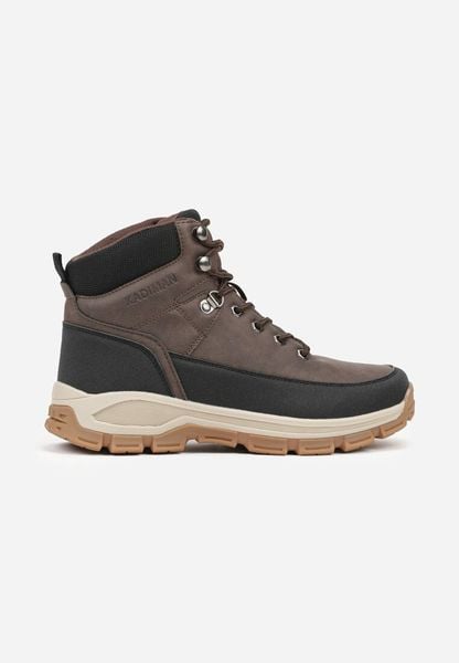 Brązowe Botki Sznurowane Traperki na Tłoczonej Podeszwie Nerana