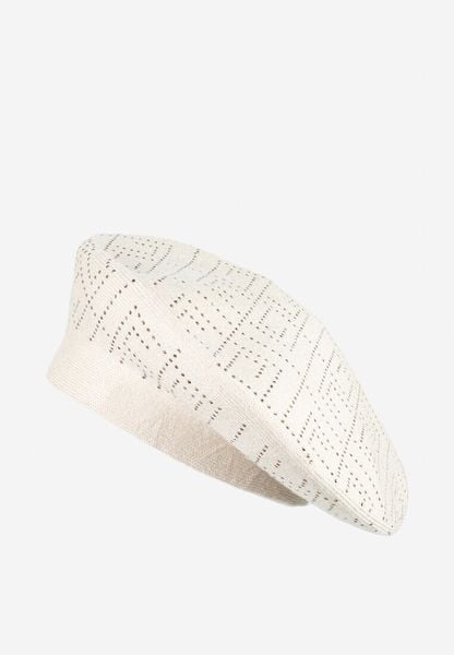 Jasnobeżowa Czapka Beret z Ozdobnym Wzorem w Cyrkonie Blorgga