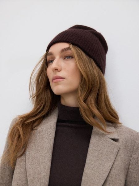 Czapka z wełną i kaszmirem – ciemnobrązowy