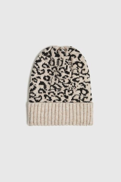 Zimowa czapka w panterkę beżowa