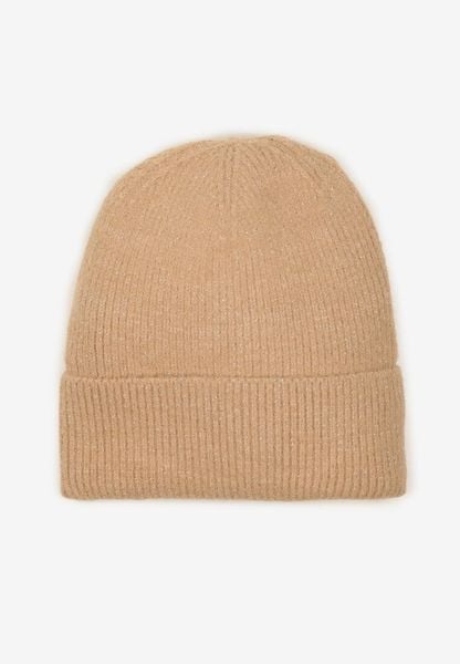 Ciemnobeżowa Czapka z Metaliczną Nicią i Wywinięciem Temivra