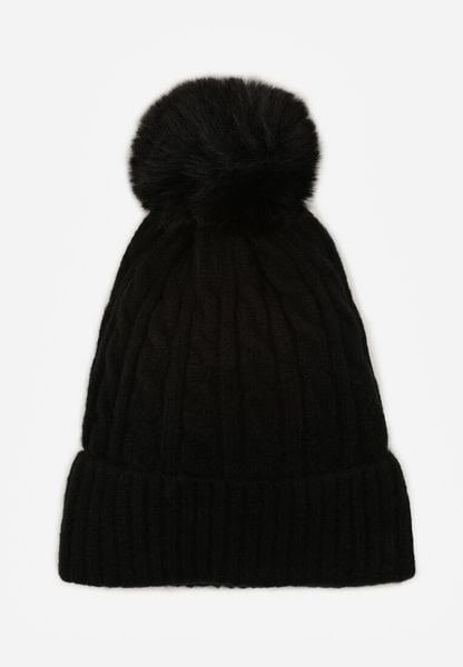 Czarna Czapka w Warkoczowy Splot z Pomponem Vetisare