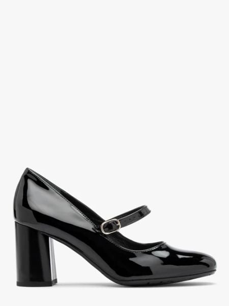 Lakierowane czółenka z paskiem na obcasie typu klocek
