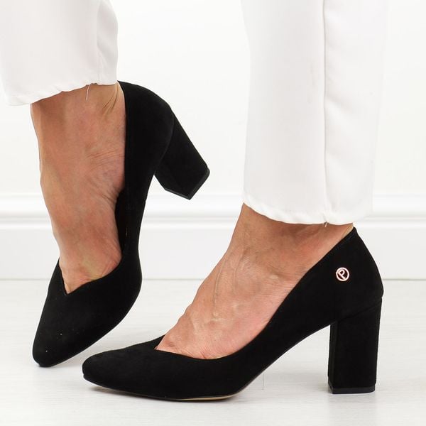 Czarne Polskie czółenka damskie na słupku Prestige 2040 Skóra Zamsz