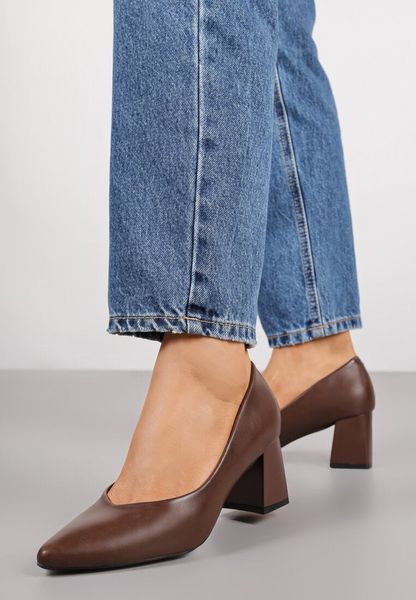 Brązowe Czółenka Vices z Wkładką ze Skóry Naturalnej na Ozdobnym Słupku Nailise