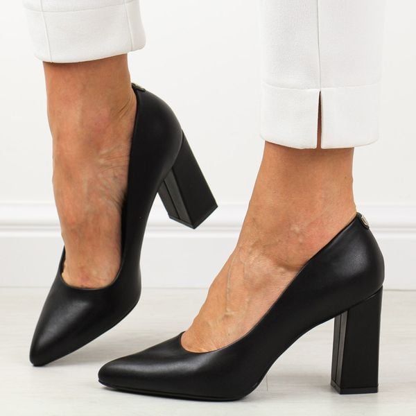 Czarne pu czółenka damskie na słupku Sergio Leone Pb216