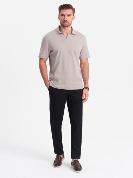 Męskie klasyczne spodnie chino z delikatną teksturą - czarne V5 - Rozmiar: L