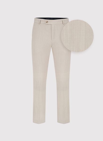 Wełniane spodnie garniturowe – Pako Lorente. Beżowe spodnie męskie. Wełniane spodnie męskie. Spodnie dla Pana Młodego. Skład: 100% wełna. Fason Slim. PREMIUM.