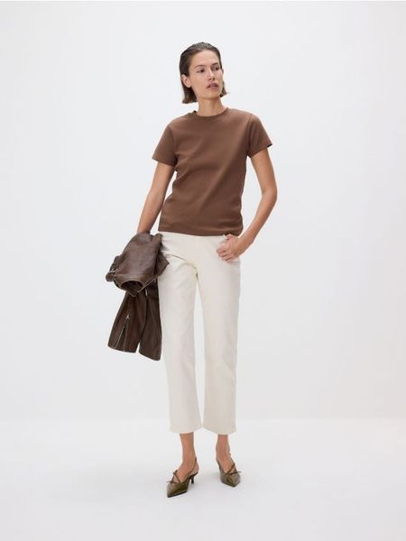 Jeansy o prostym kroju, wykonane z bawełnianego denimu.