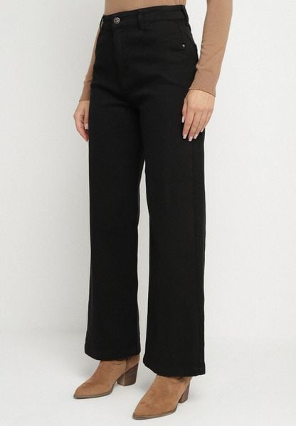 Czarne Szerokie Jeansy z Bawełny z Wysokim Stanem Lediane