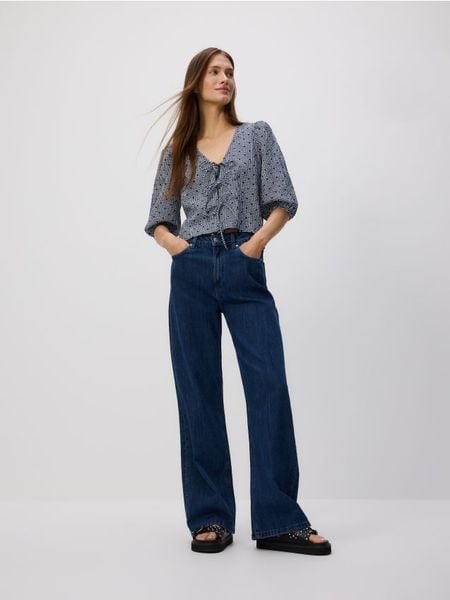 Jeansy o kroju wide leg, wykonane z bawełny z dodatkiem lnu.
