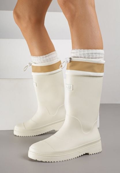 Białe Kalosze ze Ściąganą Cholewką i Napisem Oveslia