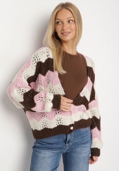Różowy Kardigan w Ażurowy Wzór z Dodatkiem Wełny i Wiskozy Esilla