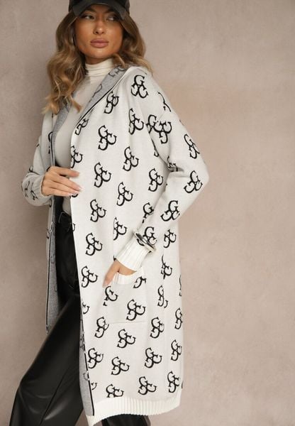 Jasnoszary Kardigan Ozdobiony Geometrycznym Wzorem Ralittia