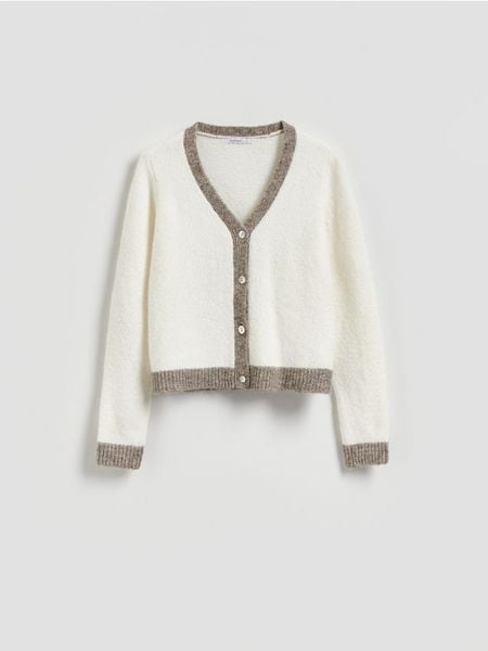 kardigany damskie ze sklepu reserved kardigany damskie z kontrastowym kołnierzykiem kardigany damskie reserved białe kardigany damskie odzież reserved kardigany damskie bez kołnierzyka odzież reserved