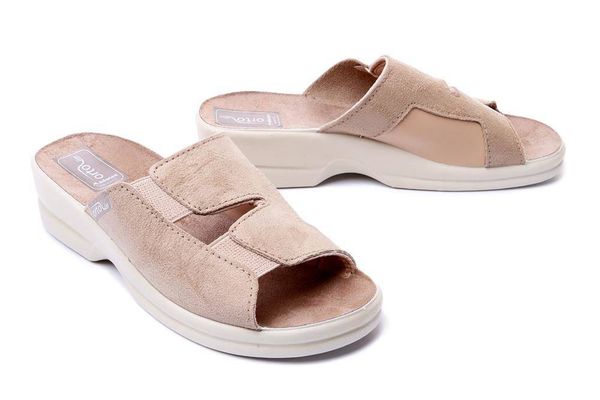 Klapki/kapcie damskie. Obuwie należy do linii Orto Line. Gumy ściągające. Lekka podeszwa Anatomic PU. Shock Absorber Point.