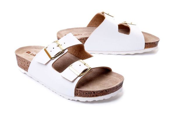 Klapki damskie. Skórzana, profilowana wkładka. Zapięcie na dwie klamerki. Elastyczna podeszwa.