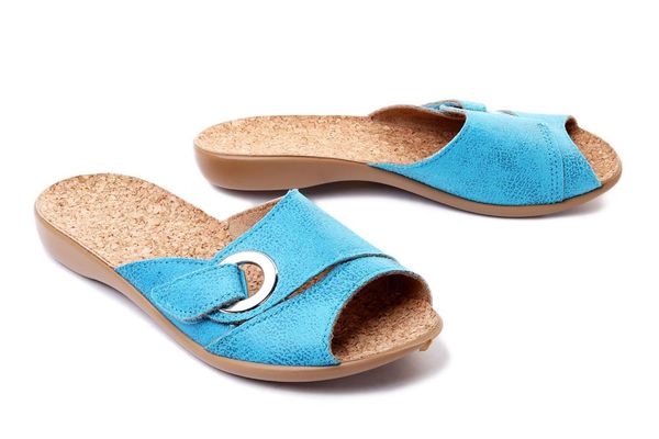 Kapcie/klapki damskie. Korkowa wkładka. Zapięcie na rzep. Oddychające podeszwy. System B-Relax.
