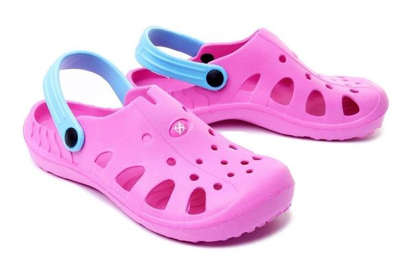 Klapki, croksy damskie. Ażurowa cholewka. Miękka wkładka. Ruchomy pasek. Klapki można użytkować jako sandały. Lekkie, elastyczne, antypoślizgowe podeszwy.