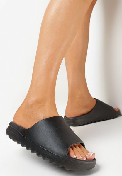 Czarne Piankowe Klapki na Podeszwie z Wycięciami Ferietta