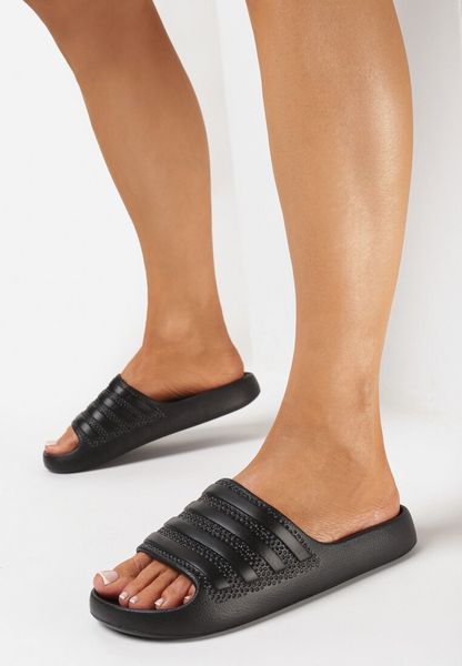 Czarne Klasyczne Klapki z Pianki z Ozdobną Cholewką Filare