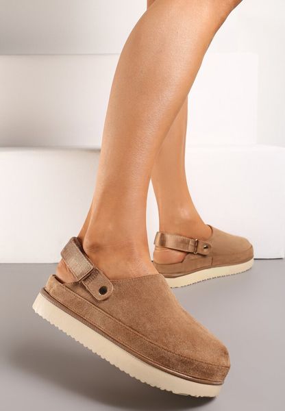 Ciemnobeżowe Klapki Mule w Stylu Chodaków na Niskiej Platformie Xrea