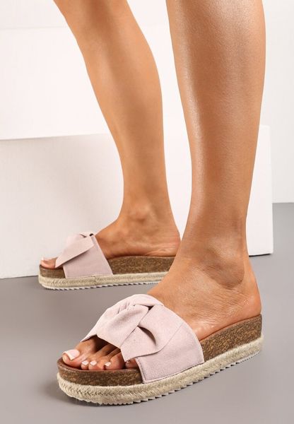 Różowe Klapki na Grubej Płaskiej Podeszwie z Wyściółką z Ekoskóry Ozdobione Kokardą Rrissa
