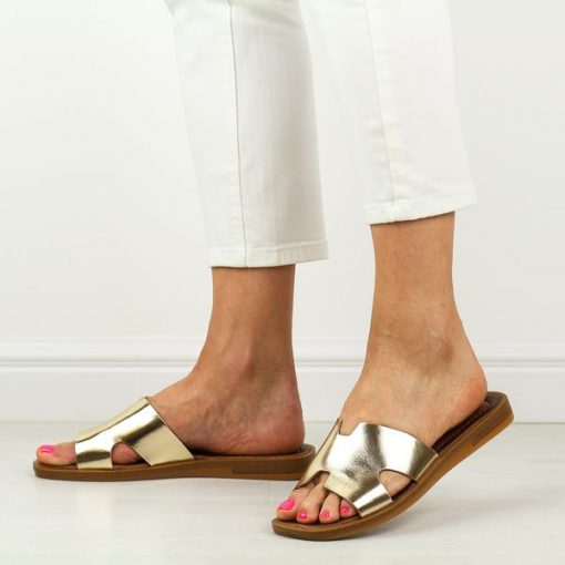 Oto nasze eleganckie złote skórzane płaskie klapki damskie,idealne na ciepłą wiosnę, lato oraz na różnorodne okazje. Cholewka tych klapków została wykonana ze skóry naturalnej, co gwarantuje wysoką jakość oraz trwałość. Wkładka wewnętrzna jest miękka i wykonana również ze skóry naturalnej, co zapewnia komfort i przyjemność noszenia przez cały dzień. Klapki posiadają płaski spodek, co sprawia, że są wygodne […]