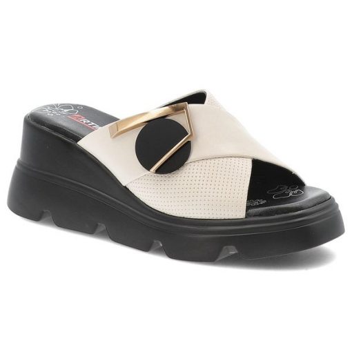 Beżowe Klapki Artiker Stylowe Obuwie Damskie Na Koturnie