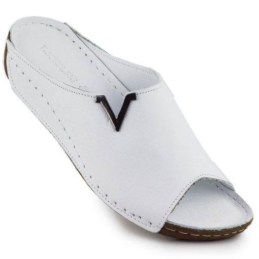 Skórzane klapki damskie na koturnie białe T.Sokolski L22-301