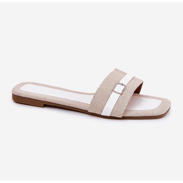 Płaskie Klapki Damskie Z Paskiem I Sprzączką Beżowo-Białe beżowy
