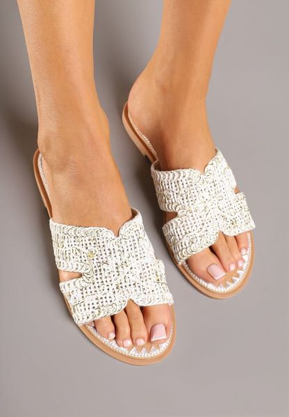 Białe Klapki Vices Ozdobione Plecionką Kovirina
