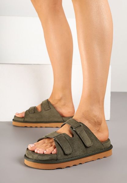 Ciemnozielone Klapki na Grubej Podeszwie z Dwoma Paskami Falgis