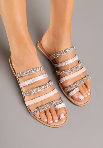 Różowe Klapki Ozdobione Paskami Lunaviaella