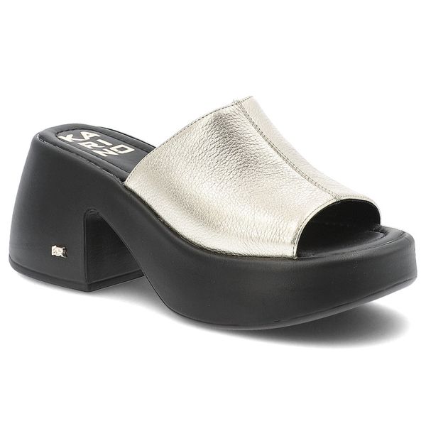 Złote Klapki Karino Eleganckie Obuwie Damskie Na Obcasie