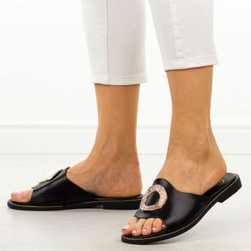 Czarne płaskie klapki damskie Filippo Dk6906/25