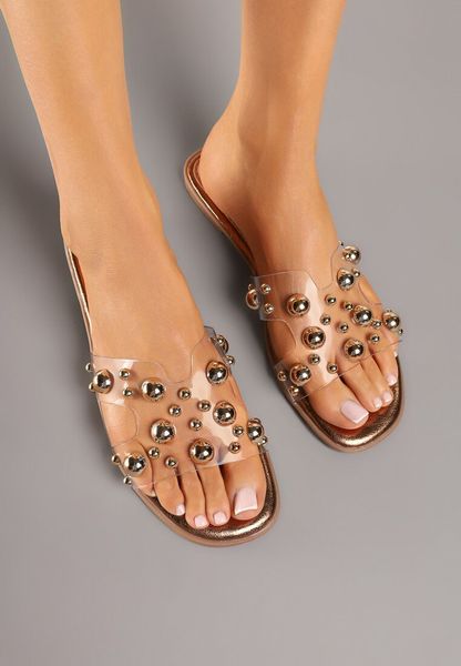 Szampańskie Klapki Transparentne z Ozdobnymi Wycięciami i Aplikacjami Sunitiel