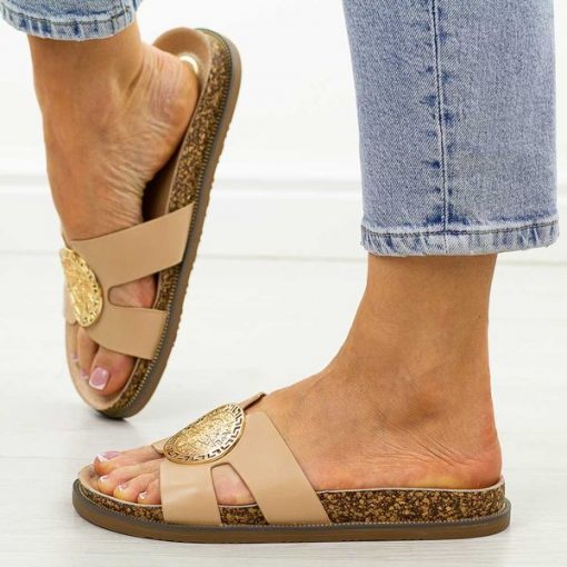 Beżowe płaskie klapki damskie Filippo Dk6972/25