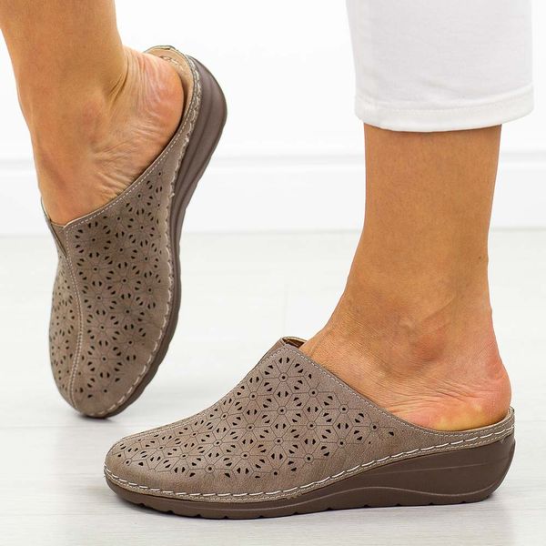 Khaki klapki damskie na koturnie Potocki 24301